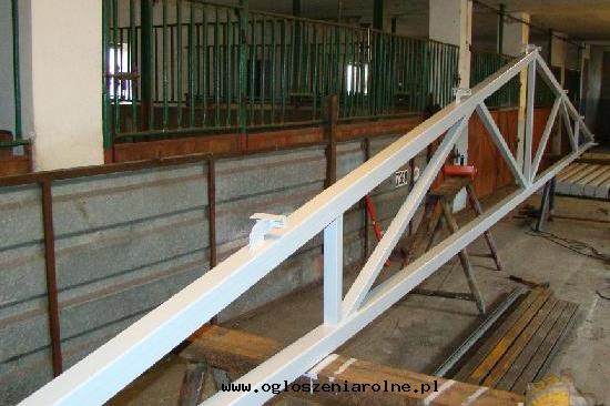 Konstrukcja jest w stanie idealnym, gotowa do montażu. Nie wymaga stałego fundamentu. Doskonale nadaje się jako wiata pod składowanie siana, słomy, maszyn rolniczych itp. Przystosowana do montażu płyty warstwowej bez wystających elementów mocowań.